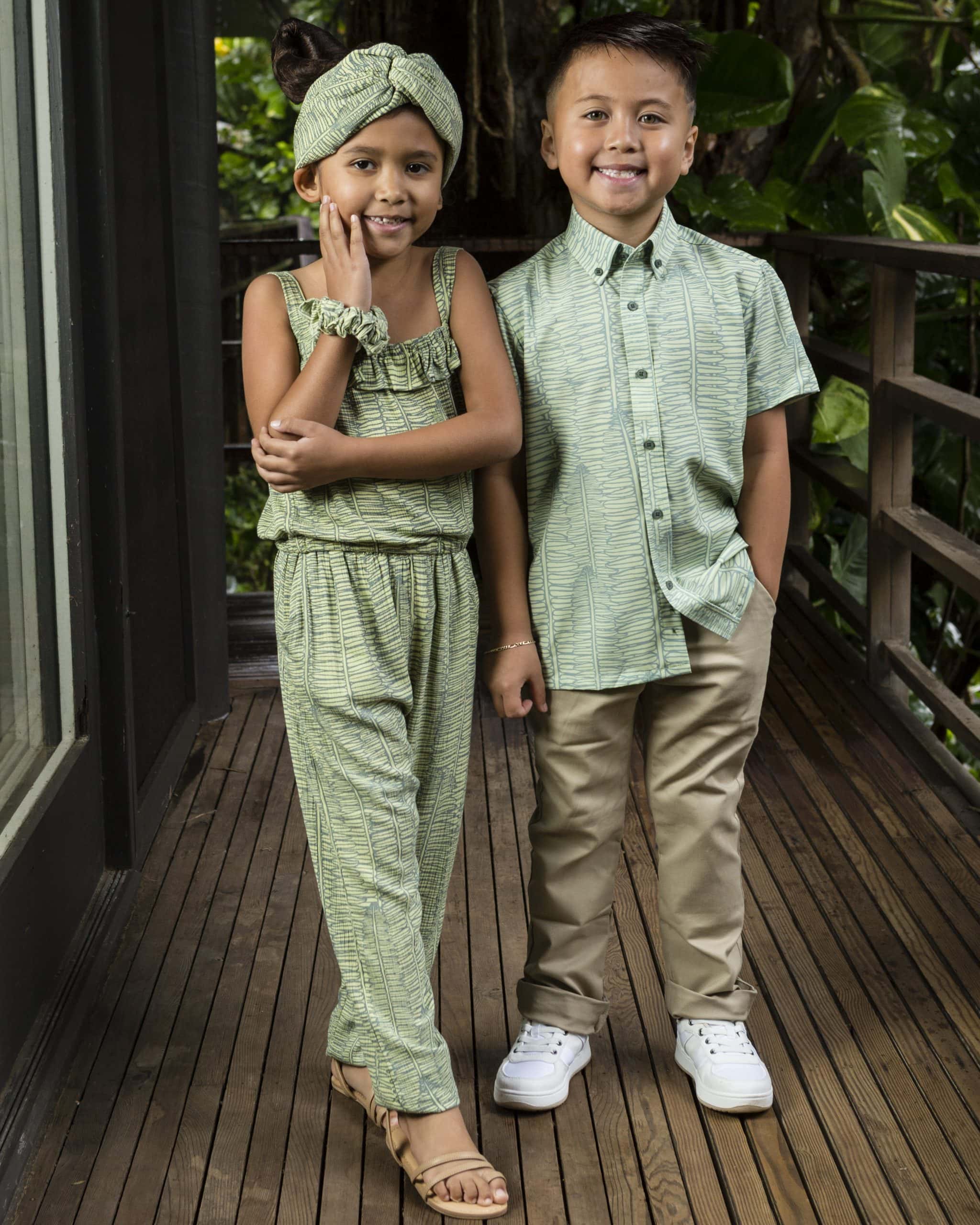 Girl wearing Scrunchies in Margarita Lily Pad Kupukupu pattern