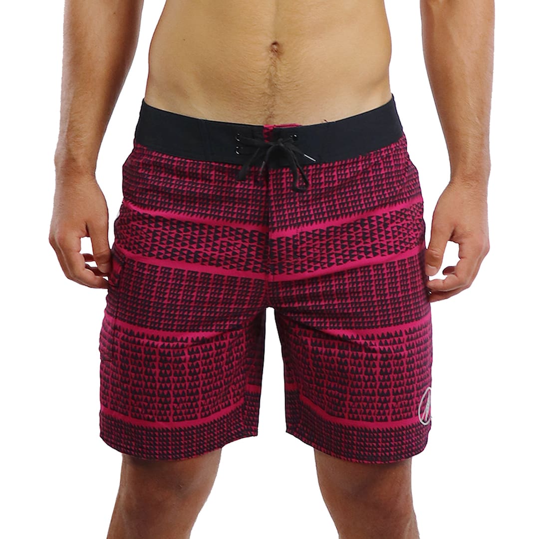 Male model wearing Boardshorts in Akoakoa Pattern and Red - Front View
