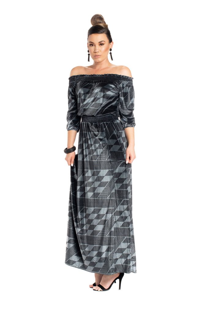 Model wearing NAHELE MAXI in Sharkskin Grey Kamehameha - Front View